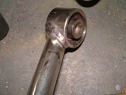 The result of the crack testing was that we saw some small cracks in both of the top wishbones on the near side suspensions. I took these over to Steve at Concept Designs and he has re-Tig welded these points. In fact once the plating had been removed, he could not see any cracks in the welds themselves so it looks like it was just plating deep. Anyway he has added another weld on top to be certain and these are now back on the car.